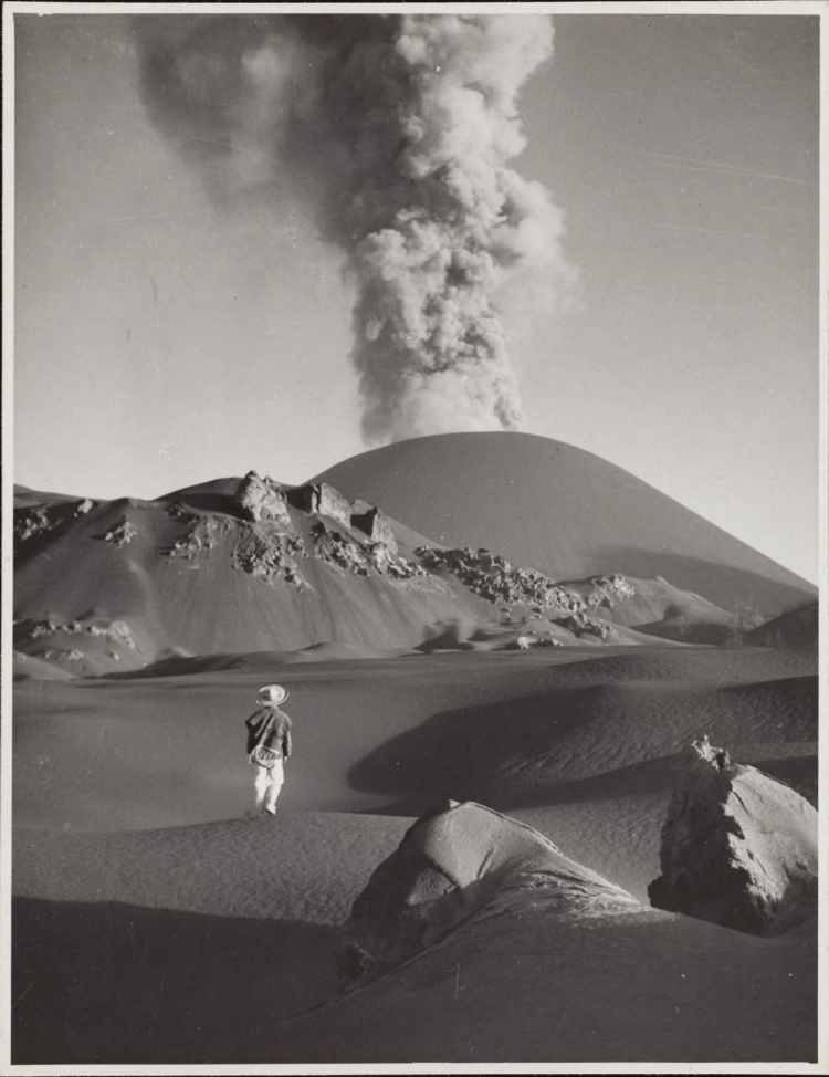 Paricutin Volcano erupting in January 1944. Michoacán, Mexico. Arno Brehme, field work photographs. Smithsonian Field Book Project.