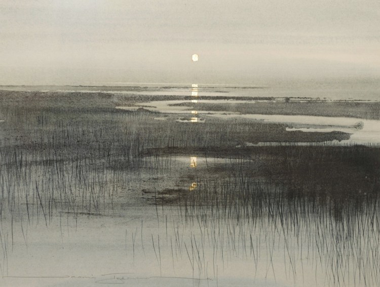 Naomi Tydeman(British) Grey and Silver Marsh Watercolour & gold leaf 43 x 36 via more
