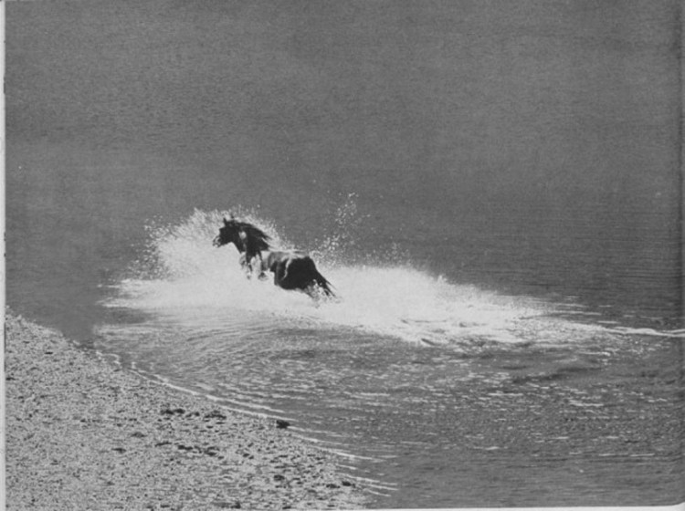 horse swimming in a mountain lake, 1965