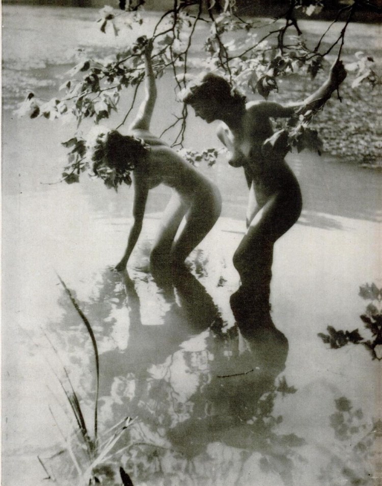 Girls wading. By Yvonne Gregory. Private lake in Norfolk, England, summer, 1939. [::SemAp::]