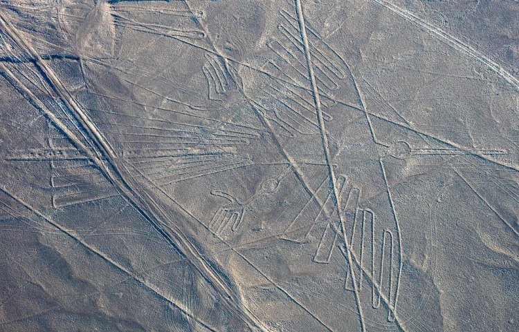 Aerial of one of the Nazca Lines, known as The Condor