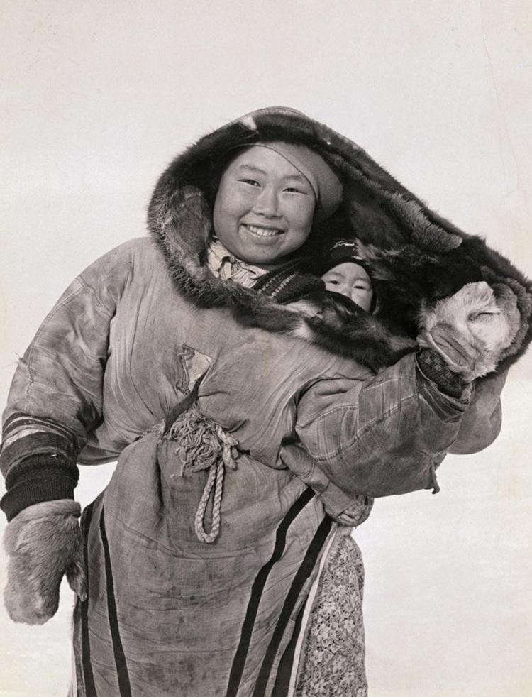 Inuit infant carried in the mother’s parka hood to keep warm, 1940 Check this blog!