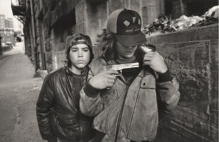Rat and Mike with a Gun, Seattle, Photo by Mary Ellen Mark, 1983