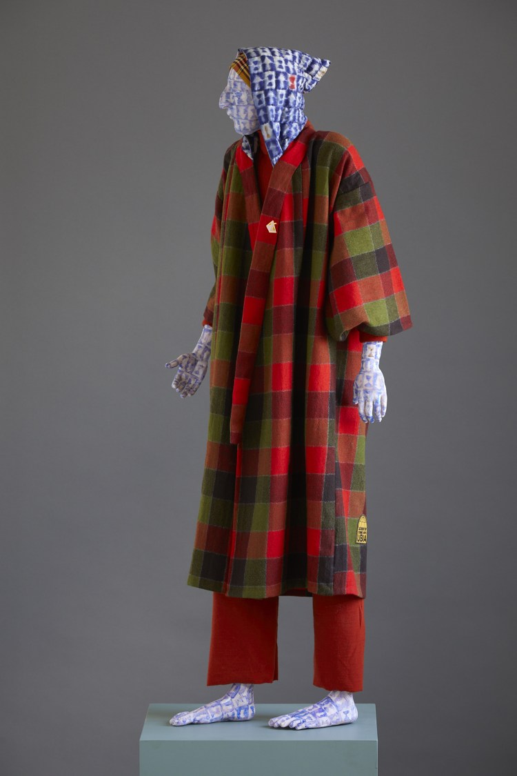 Francis Upritchard – Jessie, 2019(Steel and foil armature, modelling material, fabric, paint)