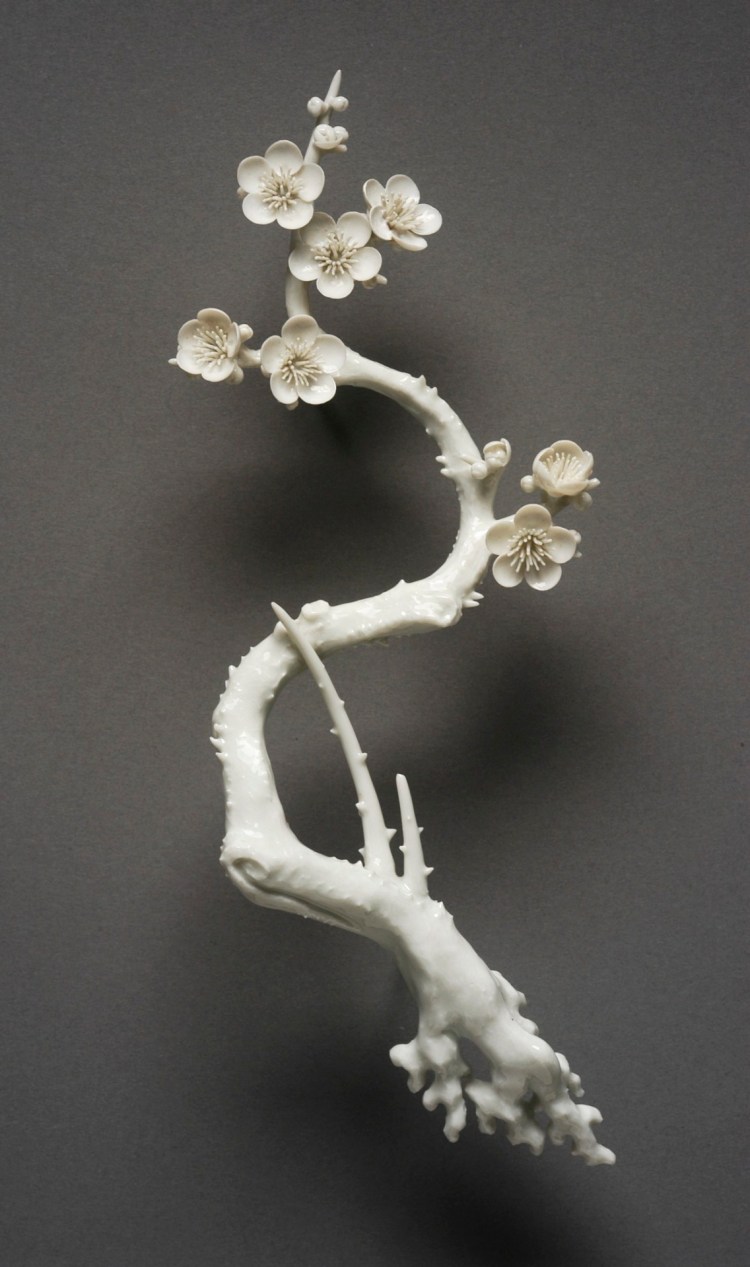 Porcelain weight in the form of a plum branch, made in Japan in the 19th century (source).
