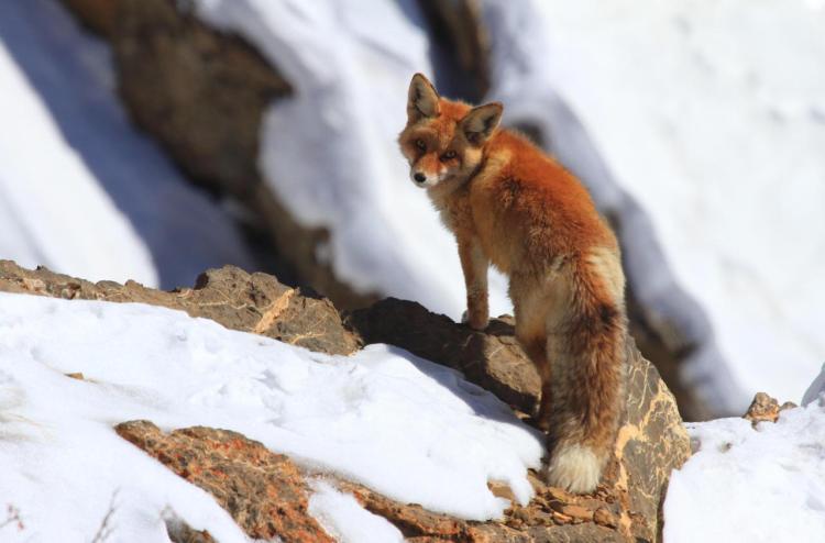 Himalayan Red Fox in a remote region of Indian Trans Himalayas. (OC). Used a 100-400 F4 on a Canon 5 D Mark II