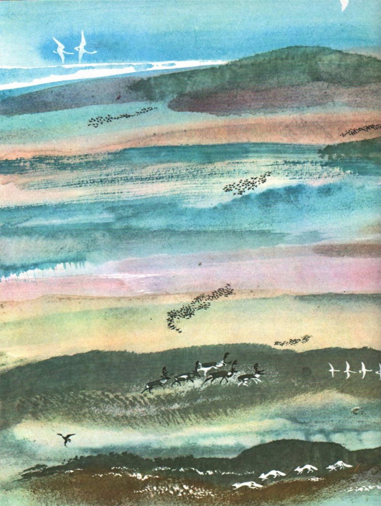 Nikita Charushin. Illustration for Nikolai Sladkov’s “From the South to the North” (1987)
