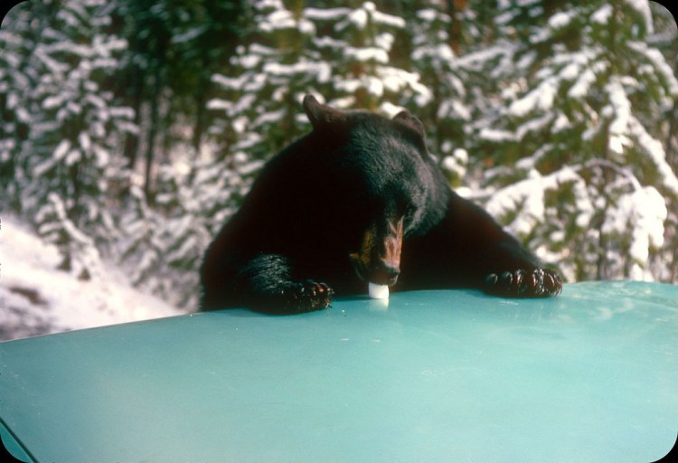 Bear eating marshmallow, Yellowstone National Park, 1967.