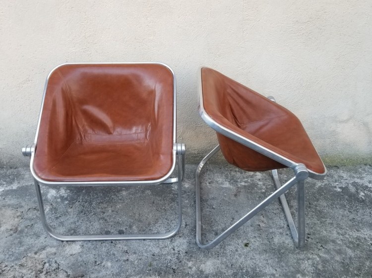 Plona Brown Leather Folding Chair by Giancarlo Piretti for Castelli