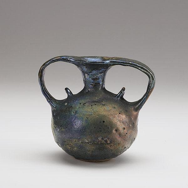 Beatrice Wood – Double-handled vase covered in lustered glaze.