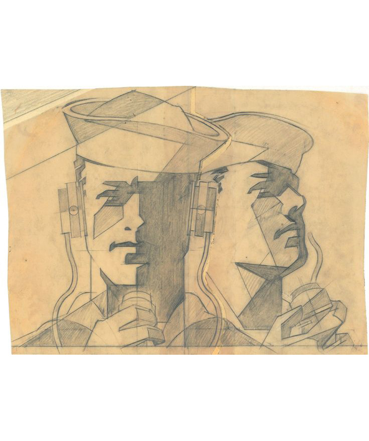 Joseph Binder, sketch for US Navy poster, 1950s. Pencil on parchment. MAK Vienna. Via europeana